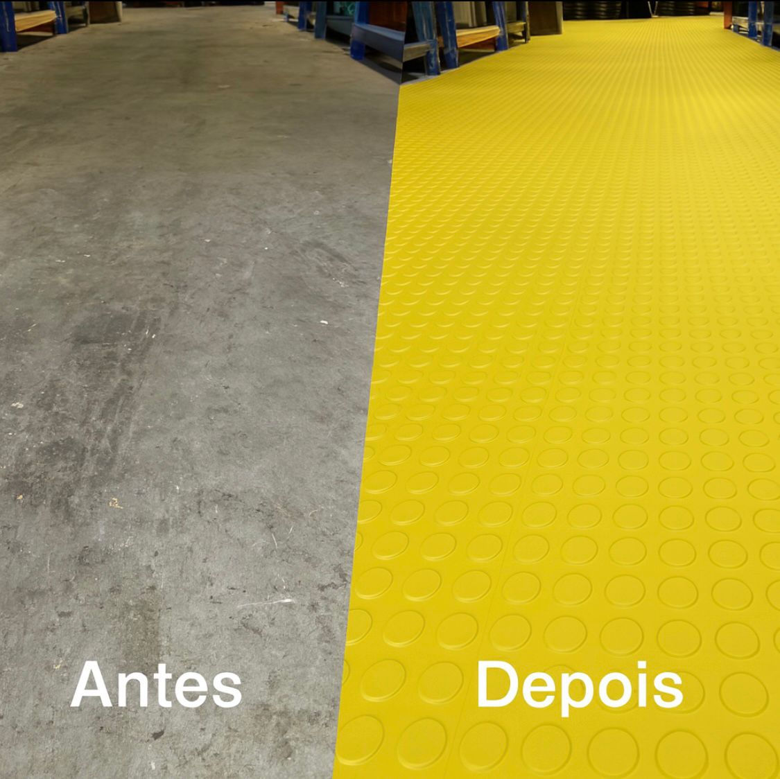 Manta em rolo Pastilhado AMARELO (a tonalidade varia conforme LOTE) fabricado em material PVC sintético com 3mm espessura x 1,20mt de largura x 15mts comprimento cada rolo.